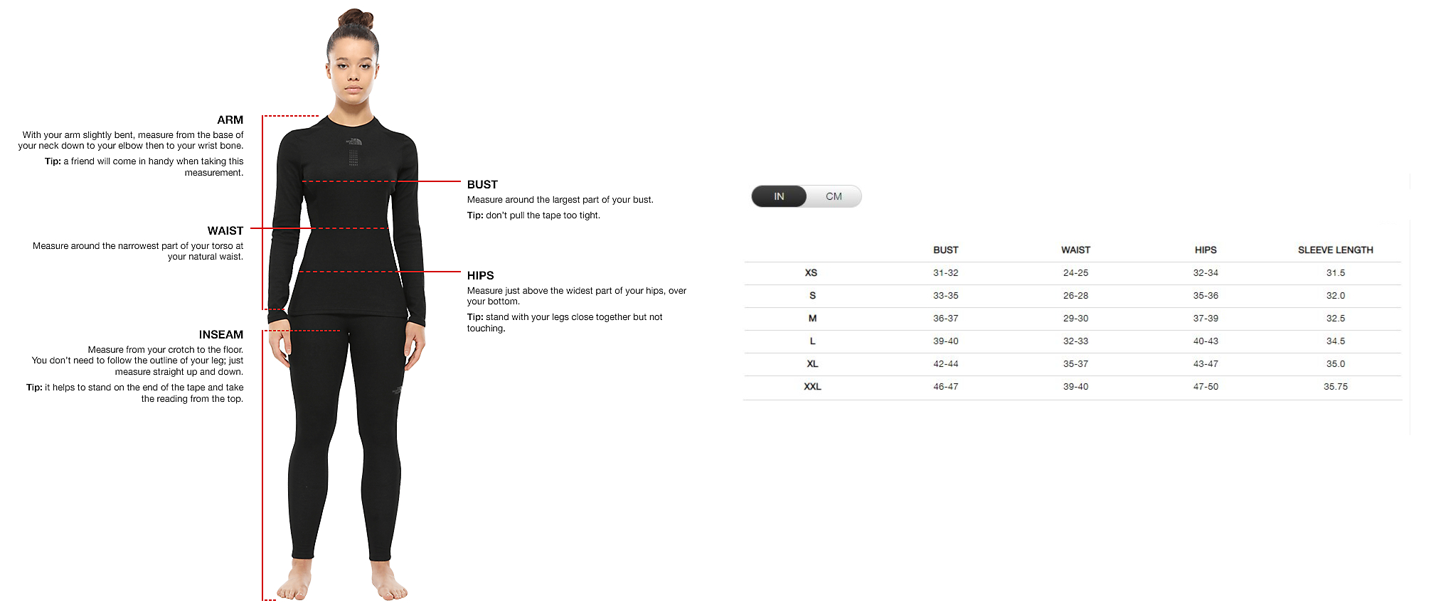 Click on the image to see the full sized image of the TNF - Womens Jackets & Tops size guide